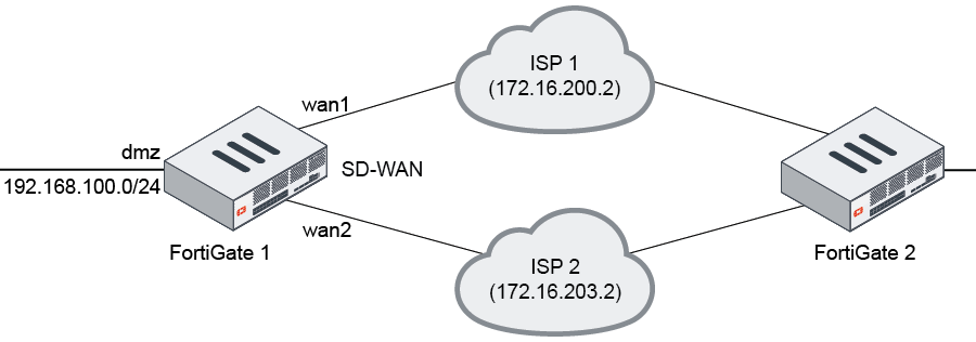 For example, a customer has two ISP connections, wan1 and wan2. On each FortiGate, two IPsec VPN interfaces are created. Next, an ipsec-aggregate interface is created and added as an SD-WAN member.