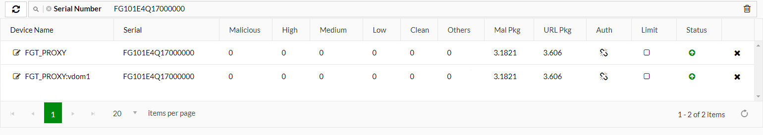 Search using the FortiGate serial number to locate the FortiGate. In the Auth column, click the link icon to authorize the FortiGate.