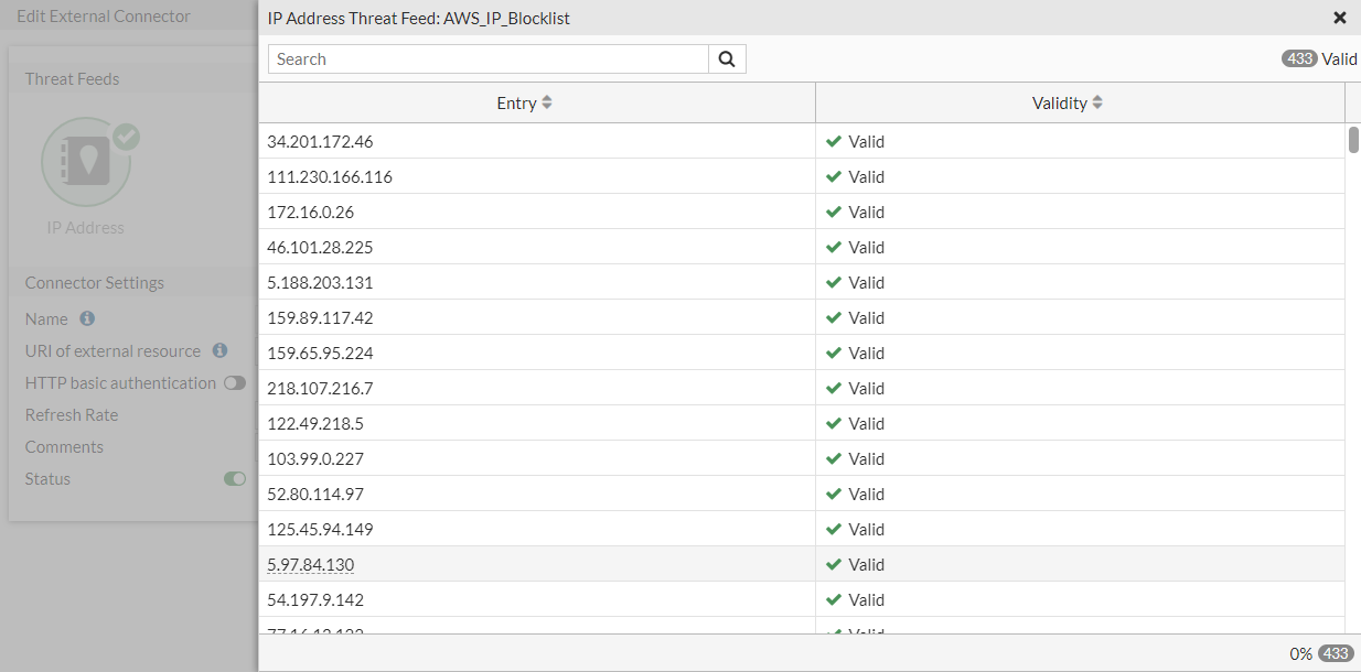 - Edit the connector, then click View Entries to view the IP addresses in the feed.