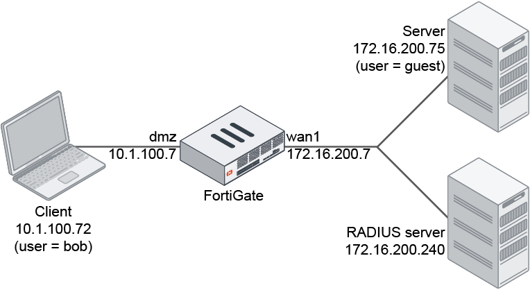 config user radius edit "Ubuntu_docker" set server "172.16.200.240" set secret ************ next end - Configure the local user: