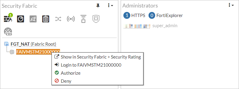- Go to Security Fabric > Fabric Connectors and double-click the Security Fabric card.