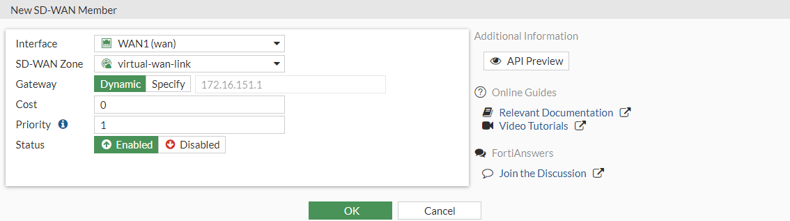 Repeat these steps to create SD-WAN members for the WAN2, VPN1, and VPN2 interfaces.