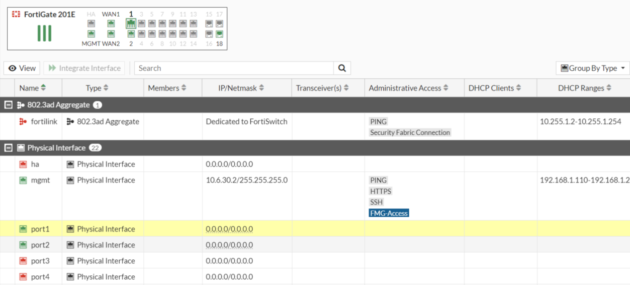 Log in to the FortiGate Cloud 2.0 portal and access the FortiGate remotely again. Since the profile changed to prof_admin, they can only view items (such as interfaces).