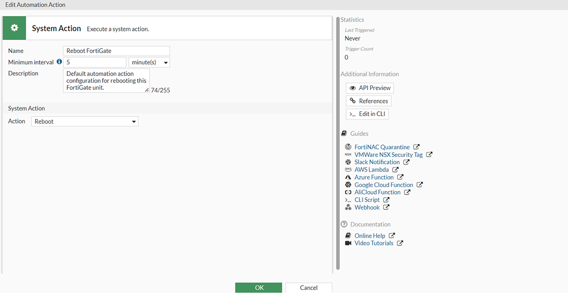 Default automation action configuration for rebooting this FortiGate unit.