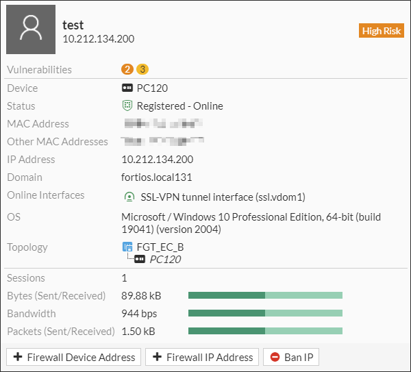 If applicable, the endpoint's host can be quarantined (click Quarantine Host) or their IP address can be banned (click Ban IP).