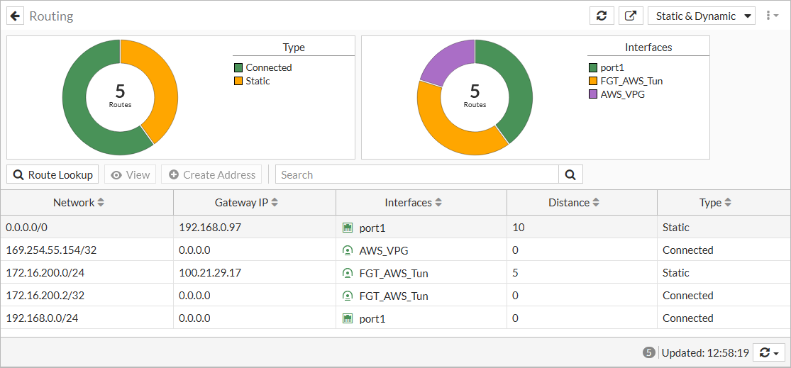 Once the firewall policies are configured, the VPN tunnels should come up when there is traffic.