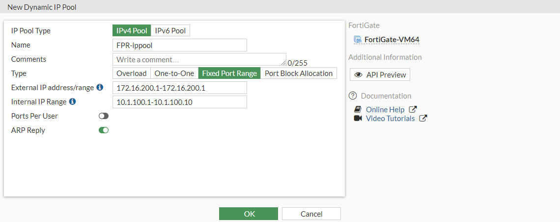 - Select IPv4 Pool and then select Fixed Port Range.