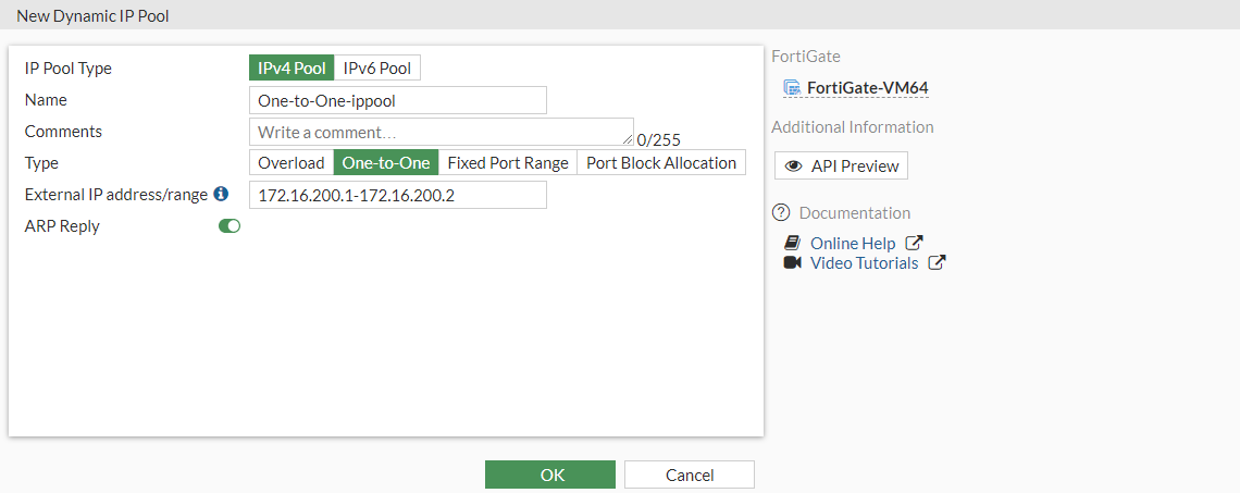 - Select IPv4 Pool and then select One-to-One.