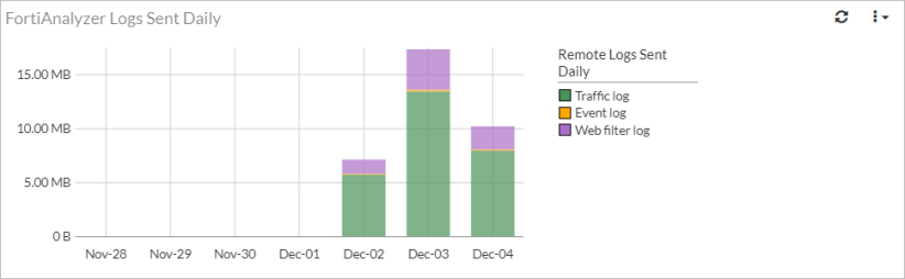 The Logs Sent widget displays chart for remote logging sources (FortiAnalyzer, FortiGate Cloud, and FortiAnalyzer Cloud) sent daily.
