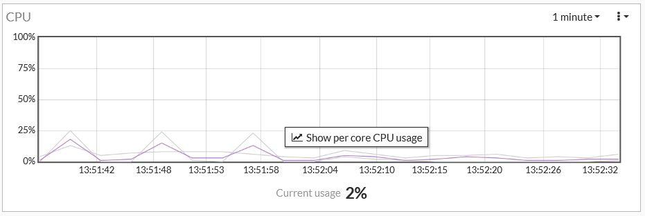 The resource widgets show the current usage statistics for CPU, Memory, and Sessions.
