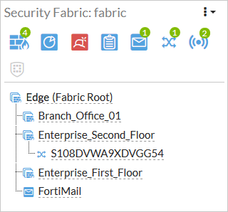 The Security Fabric widget displays all the FortiGates in the Security Fabric.