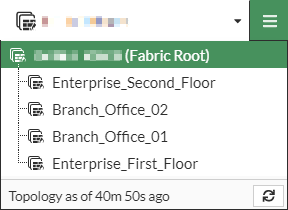 - In the Security Fabric members dropdown menu, hover the cursor over a FortiGate so the tooltip is shown.