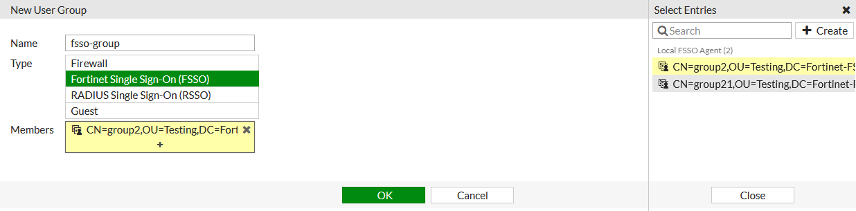 - Set the Type to Fortinet Single Sign-On (FSSO).