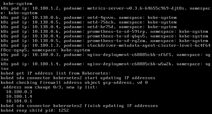 - Confirm that the K8s SDN connector resolves dynamic firewall IP addresses using the configured filter: