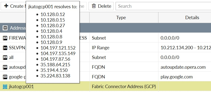 4. Create a dynamic firewall address for the configured GCP SDN connector: