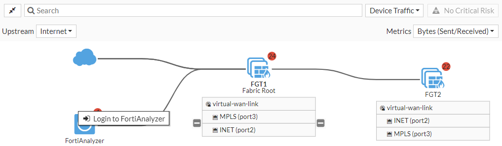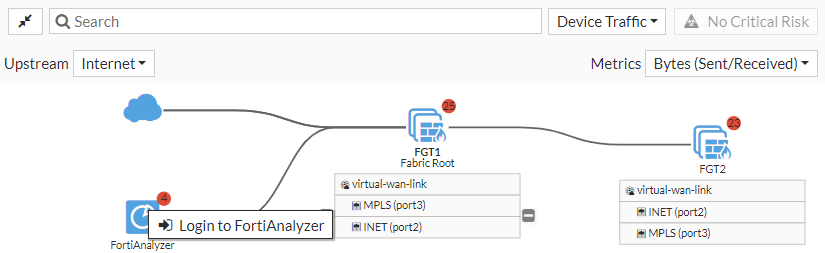 In the topology, click the FortiAnalyzer icon and select Login to FortiAnalyzer.