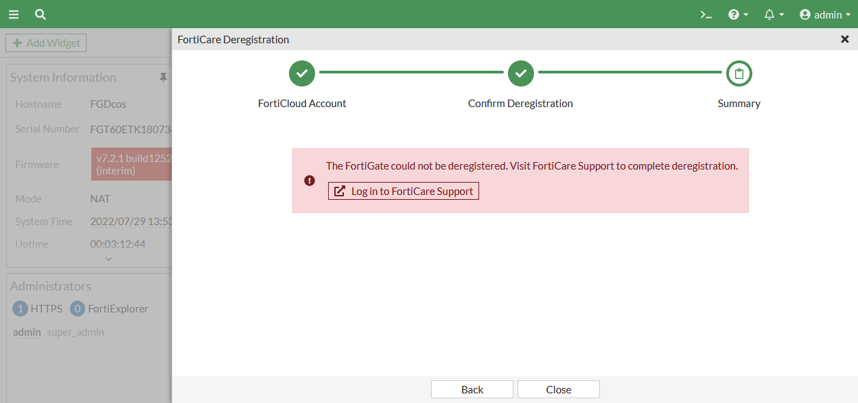 forticare_product_deregister:1335: Failed to get response (rc = 0, http_code = 403) Unit deregistration unsuccessful.