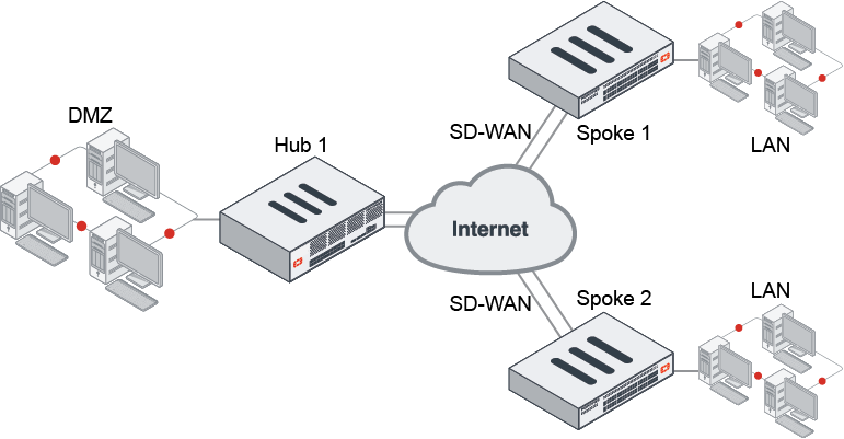 Spoke 1 and Spoke 2 can learn four different routes from each other.