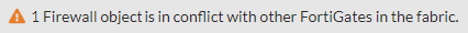 - Open the notification center drop dropdown. There is a message that 1 Firewall object is conflict with other FortiGates in the fabric.