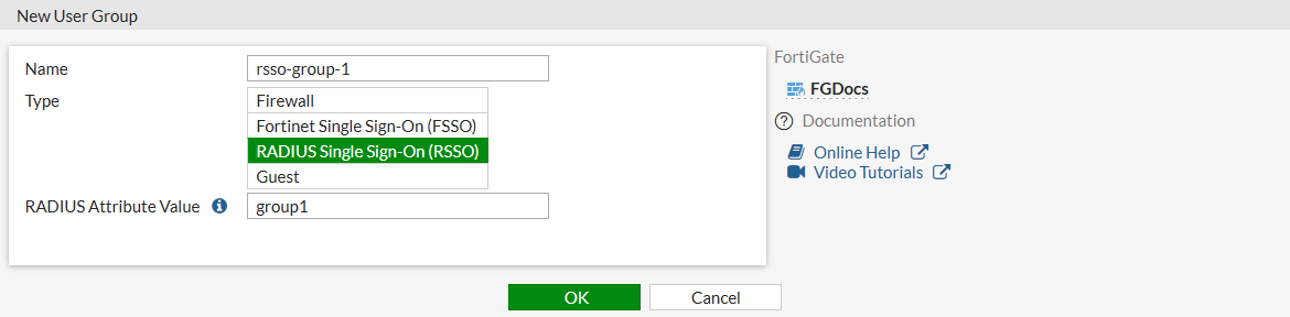 rsso-endpoint-attributemight work in common remote access scenarios where users are identified by their uniqueCalling-Station-Id, but in other scenarios the user name might be in a different attribute.config user radius edit "Local RSSO Agent" set rsso-endpoint-attribute <attribute> set sso-attribute <attribute> next end - Add the local RSSO user group to a firewall policy.
