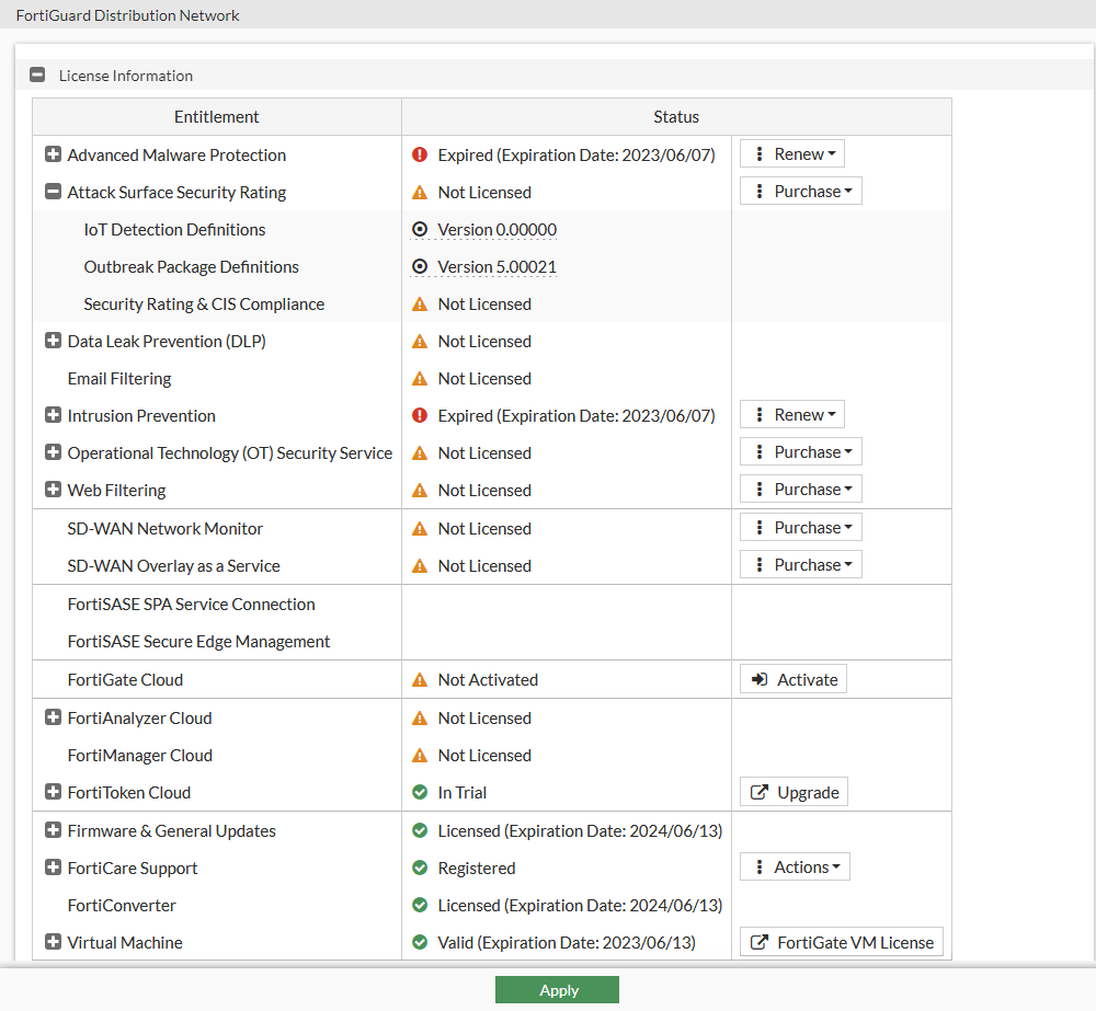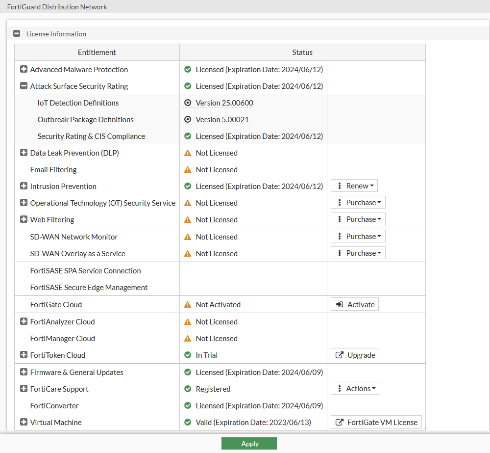 Verify the Attack Surface Security Rating (FGSA) license and IoT detection service object: