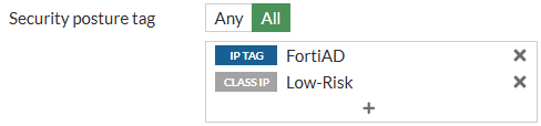 When configuring the ZTNA policy to control access, the Security posture tags option can be set to Any or All: