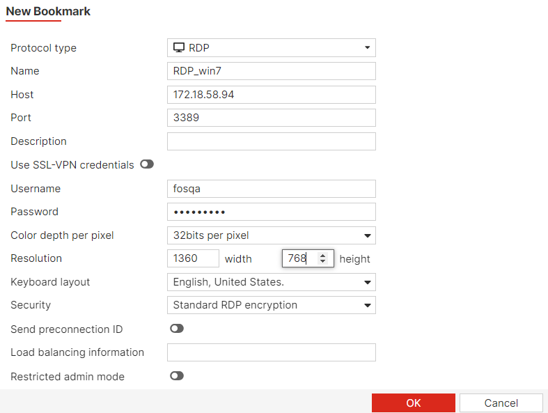 - Create a new personal RDP bookmark (+ New Bookmark), or hover over an existing bookmark and click the edit (pencil) icon.