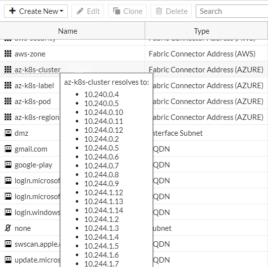 Azure SDN connectors support dynamic address groups based on Azure Kubernetes (AKS) filters.