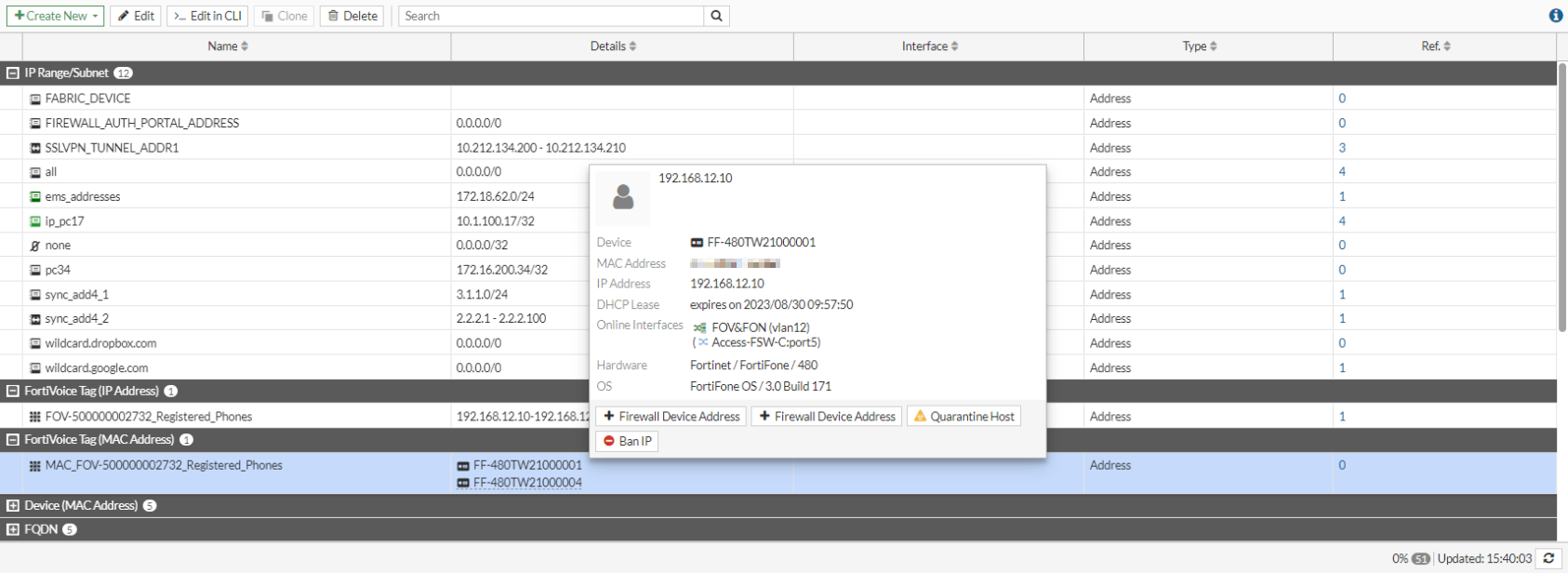 FortiVoice tag dynamic addresses can also be applied to a NAC policy. See Example of a NAC policy.