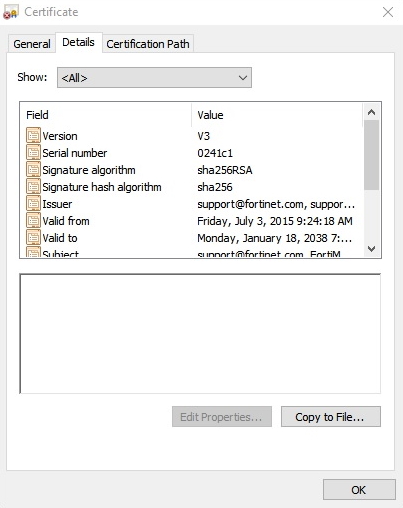 In the Certificate window, click the Details tab, then click Copy to File.