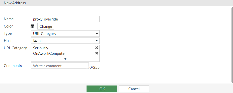 1. Go to Policy & Objects > Addresses and select Proxy > Address.