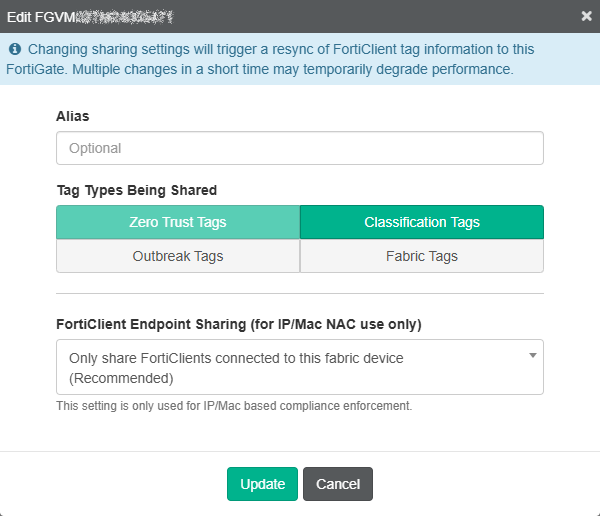 From Fabric & Connectors > Fabric Devices, find the FortiGate that requires the use of these tags.