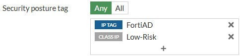 When configuring the ZTNA policy to control access, the Security posture tags option can be set to Any or All: