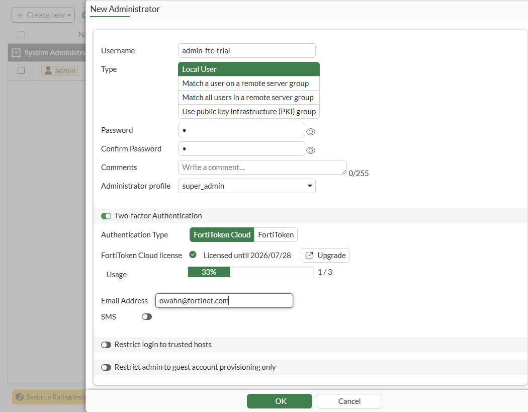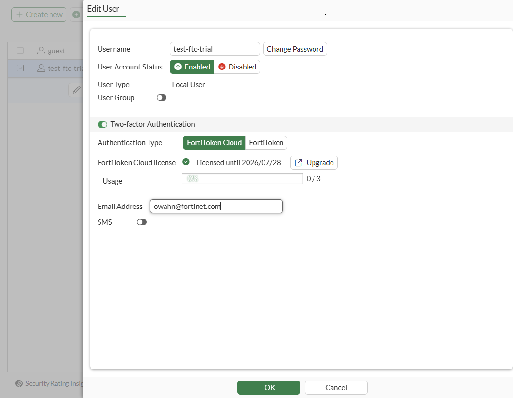 Enable the FortiToken Cloud free trial directly from the FortiGate