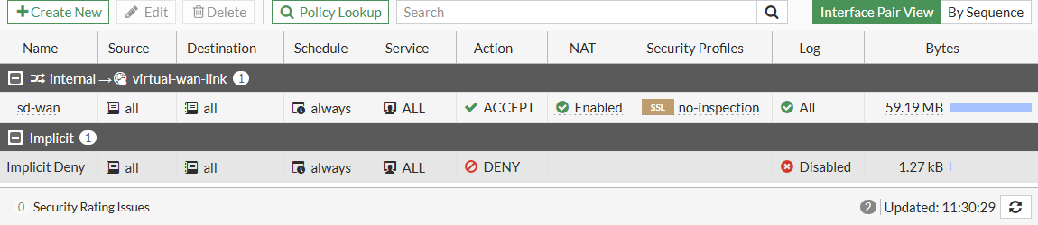 Go to Policy & Objects > Firewall Policy to review the SD-WAN policy.