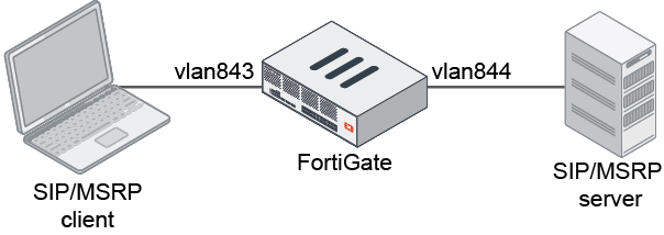 config firewall policy edit 1 set name "vdom3" set srcintf "vlan843" set dstintf "vlan844" set action accept set srcaddr "all" set dstaddr "all" set schedule "always" set service "ALL" set utm-status enable set ssl-ssh-profile "certificate-inspection" set voip-profile "msrp_test" set logtraffic all next end - Verify the log: