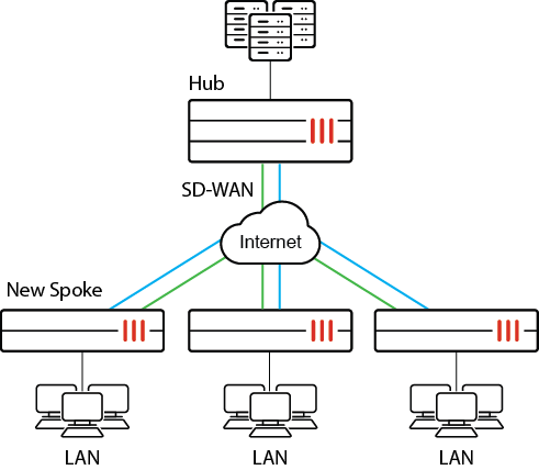 config system sdwan config service edit 3 set name "Office365" set mode sla set internet-service enable set internet-service-app-ctrl 33182 config sla edit "office" set id 2 next end set priority-members 1 2 next end endThe SD-WAN configuration can now be used in as a template for new spokes, as in Example 2.