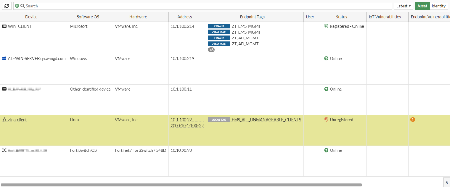 Like other security posture tags,EMS_ALL_UNMANAGEABLE_CLIENTS and EMS_ALL_UNKNOWN_CLIENTS are dynamic addresses on the FortiGate. The following diagnostic commands can be used to view local tag information:
