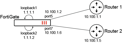 The preferred source IP can be configured on SD-WAN members so that local-out traffic is sourced from that IP. In the following example, two SD-WAN members (port5 and port6) will use loopback1 and loopback2 as sources instead of their physical interface address. A static route is created for destination 200.0.0.0/24 to use the virtual-wan-link. In turn, the FortiGate will create two ECMP routes to the member gateways and source the traffic from the loopback IPs.