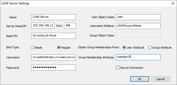 Click Add and configure the LDAP server settings: