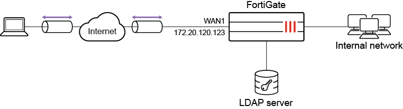 config vpn ssl settings set servercert "server_certificate" set tunnel-ip-pools "SSLVPN_TUNNEL_ADDR1" set source-interface "wan1" set source-address "all" set default-portal "web-access" config authentication-rule edit 1 set groups "ldaps-group" set portal "full-access" next end end -