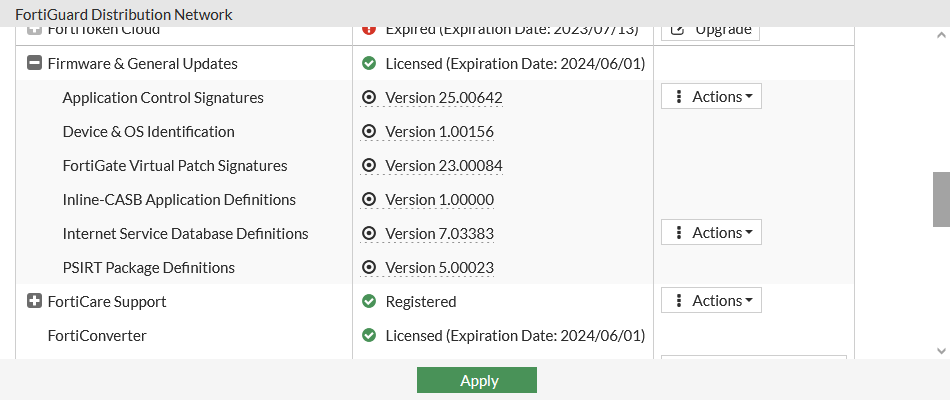 # diagnose autoupdate versions ... Security Rating Data Package --------- Version: 5.00022 Contract Expiry Date: Fri Nov 24 2023 Last Updated using scheduled update on Mon Sep 11 09:44:21 2023 Last Update Attempt: Tue Sep 12 16:29:10 2023 Result: No Updates