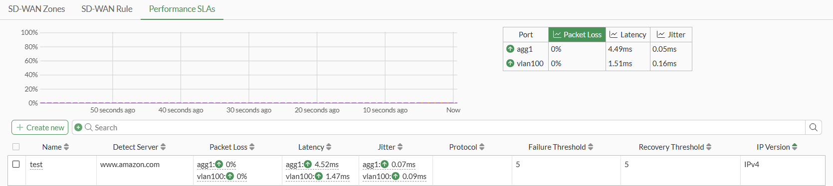 In the GUI, go to Network > SD-WAN > Performance SLA, and click Create New to access the new database.