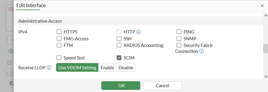 Allow SCIM access on an interface: