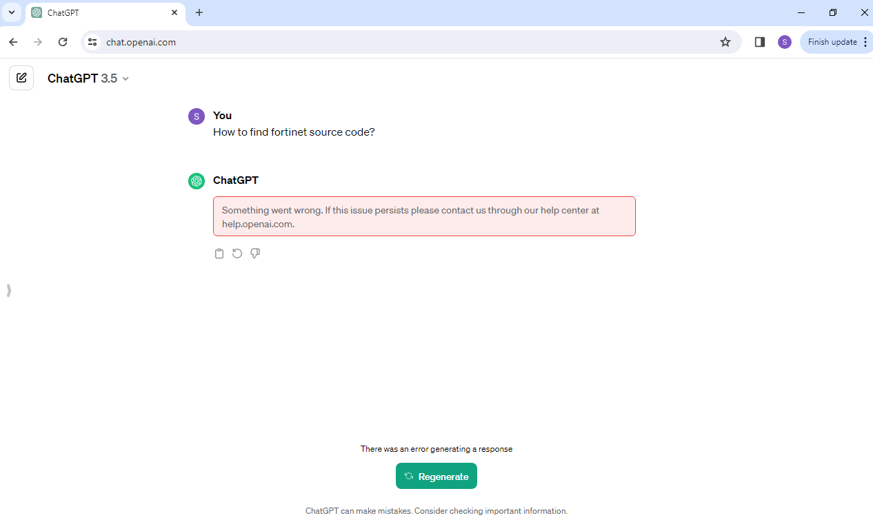In this example, a user is conducting a search on an LLM application in the Chrome browser on an office computer, using a sensitive keyword that has been configured in the DLP dictionary. The FortiGate intercepts this traffic using deep inspection and prevents the search that contains sensitive keywords because it matches the DLP profile that has been set up on this FortiGate.