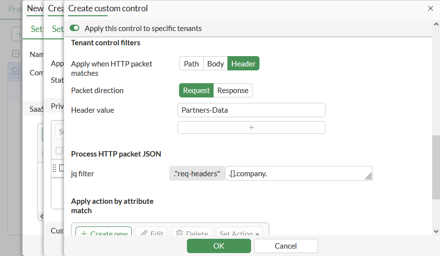 The inline CASB security profile supports control factors, such as tenant information in JSON data exchanged between a web browser and a custom SaaS application. For example, for some custom SaaS applications, the URL does not change to reflect the type or identity of the user or organization when logged in as such tenant information is exchanged using JSON data instead of through changes in the URL. JSON data can be extracted using JQ filters (see https://jqlang.org/manual/v1.5/#basic-filters).