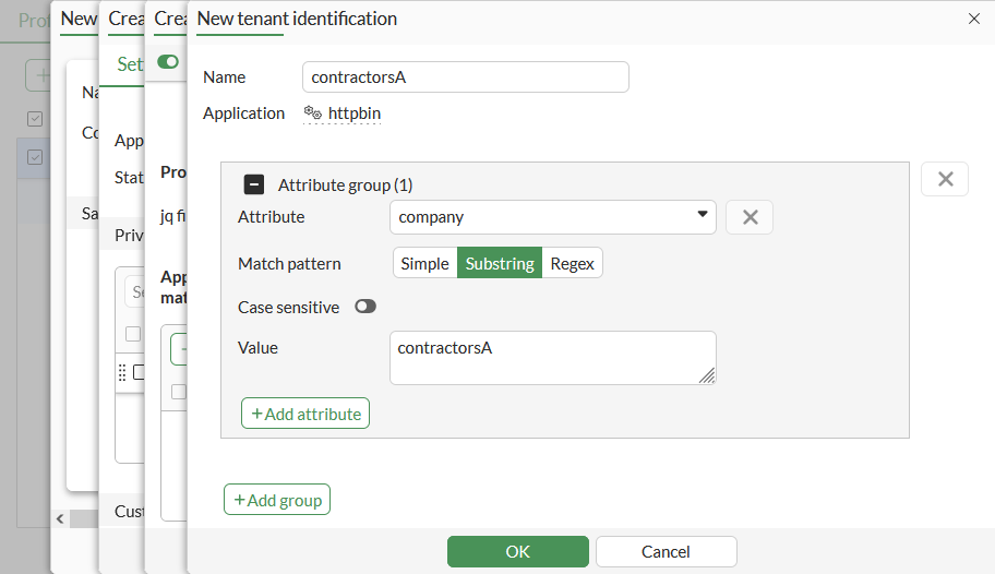 Click OK, then click Create New again to configure the tenant information for contractorsB: