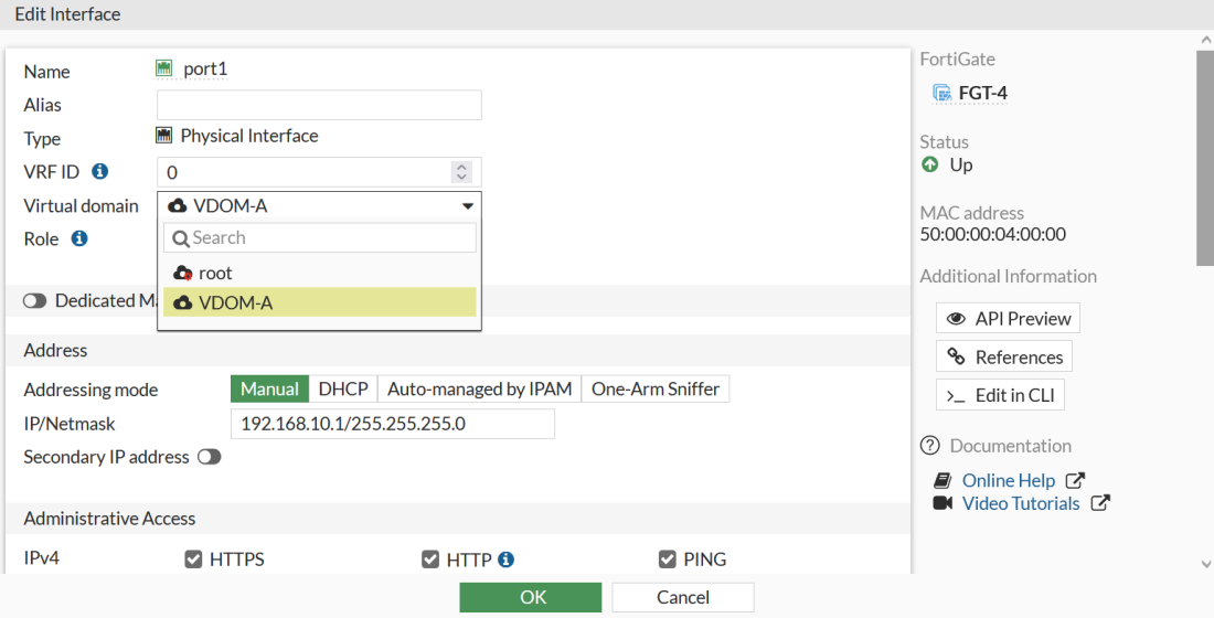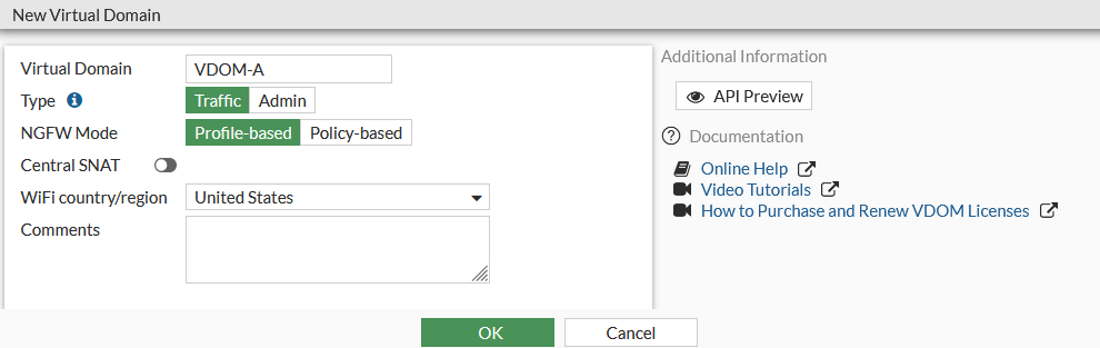 4. Click OK to create the VDOM.