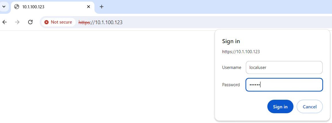 Once the certificate verification passes, an authentication dialog box is displayed.