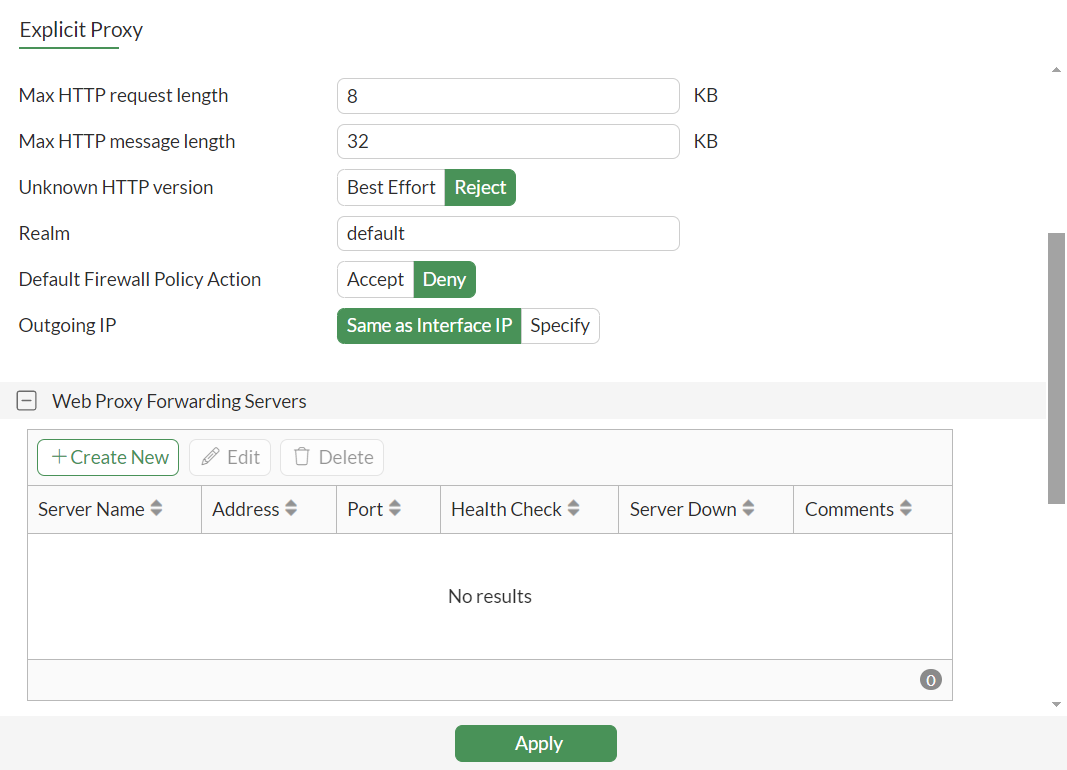 Under Web Proxy Forwarding Servers, click Create New.